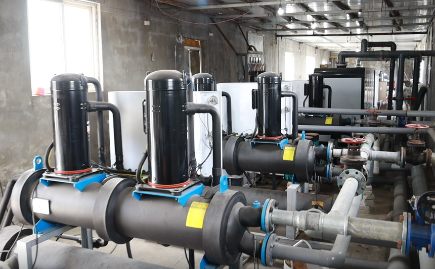 机组:CTEDB200YZ海水养殖水源热泵机组4台和ZRHS-50H海水余热回收机组4台;