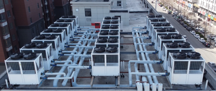 选用CTEFMR160AD超低温空气源热泵机组15台;高区15000平米,选用CTEFMR160AD超低温空气源热泵机组5台。