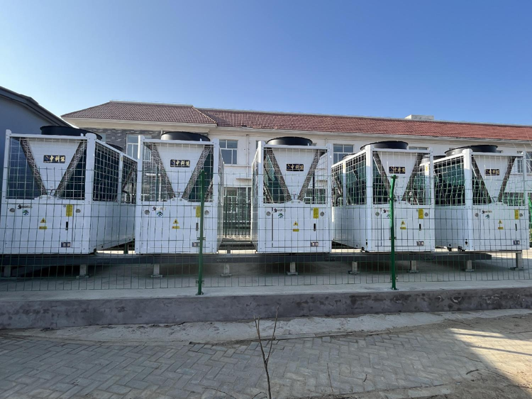 机组:CTEFMR160AD超低温空气源热泵机组4台,系统不用辅助电加热,添加缓冲水箱蓄能,降低运行费用。