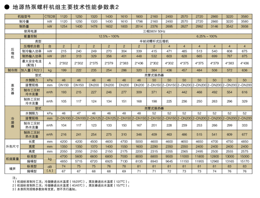 一、产品介绍 CTEDB系列螺杆式地源热泵产品是20年专注水地源热泵厂家_山东中科能人工环境有限公司广大科研人员在充分吸收国际、国内冷冻空调领域新型技术的基础上研发设计的成熟热泵产品!机组采用高质量、高品质的压缩机、冷媒系统控制元件及电脑控制器件,严格按照行业标准设计与制造!既可以用干夏季司冷、冬季采暖,也可以用于工业全年的中低温冷源需求场所! 水地源热泵集中供暖,省去了锅炉房以及与之配套的煤场和碴场;没有煤燃烧过程、避免了排烟污染;供冷省去了冷却塔,避免了噪音及霉菌污染,使环竟更加洁净优美!一机两用制冷热(水),一次性投资只有传统制冷、供热投资的112-213;运行费用只有传统方式的1/2-213,节能环保省水电!公司免费提供水地源 空气源热泵冷暖解决方案,从现场勘察、OEM定制、安装设计、售前售后一站式服务!